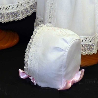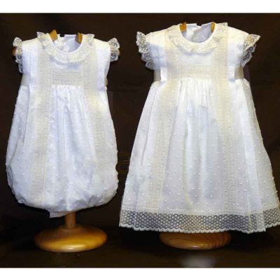 Hace conjunto con el babero de pique y plumeti y el culote, braguita o cubrepañal del mismo tejido. Son el complemento perfecto para los faldones de ceremonia, o vestidos de fiesta .