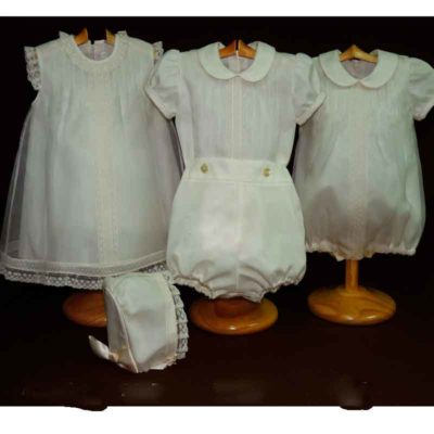 Os presentamos una pequeña muestra de nuestros Faldones, Capotas, Ranitas, Camisitas y Pantalones, Vestidos etc, Preciosos conjuntos para lucir en la Ceremonia del Bautismo.