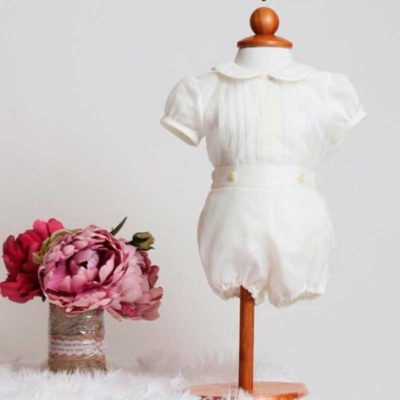 Conjunto de niño de ceremonia o fiesta compuesto por camisa y pantalón corto, a juego con el vestido de fiesta Lucía de Niña.