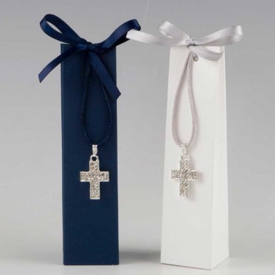 Con esta Cruz de Madera, presentada de regalo junto con esta cajita rellena con dos bombones de chocolate, harás un bonito, sencillo y dulce detalle a tus invitados de la Primera Comunión.