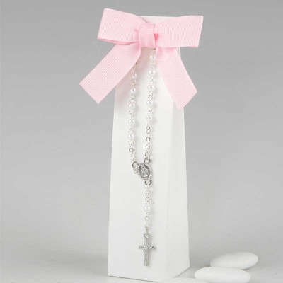 Te presentamos el Rosario de Perlitas, adornado en un saquito con cordoncito de seda.