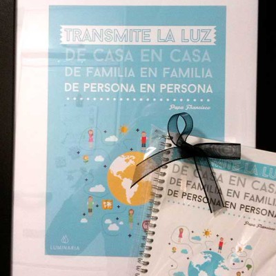 - Cuaderno Libreta tamaño A5, ilustrado con leyenda del Papa Francisco adaptada a los Niños, » Transmite la Fe de casa en casa de familia en familia»