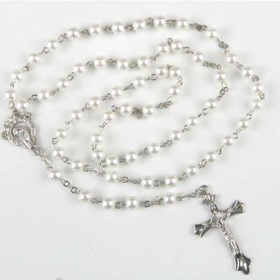 - Moderna Pulsera de Perlas de Comunión con cruz de plata maciza, de ley, montada sobre Perlas cultivadas de 6mm y ajustable al tamaño infantil con goma segura elástica. Se entrega en estuche especial de joyería de regalo, y es ideal para llevar a diario o en días especiales.