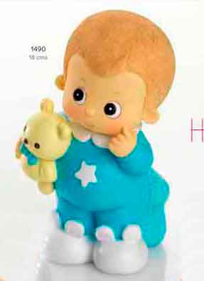 La figurita del bebé va vestido con pijamita de osito dentro de una cáscara de huevo. Medida 9 cms.