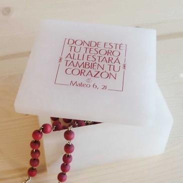 Podemos si lo deseas grabar en la trasera un pequeño texto con la fecha que nos digas o un nombre corto. Un bonito recuerdo para toda la vida con este regalo dedicado especial.
