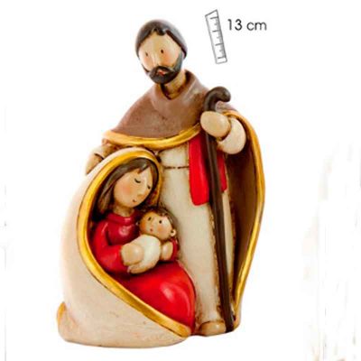 Pequeña Sagrada Familia Italiana, confeccionada artesanalmente a mano en terracota, y presentada en estuche de regalo, con certificado de garantía de confección y procedencia.