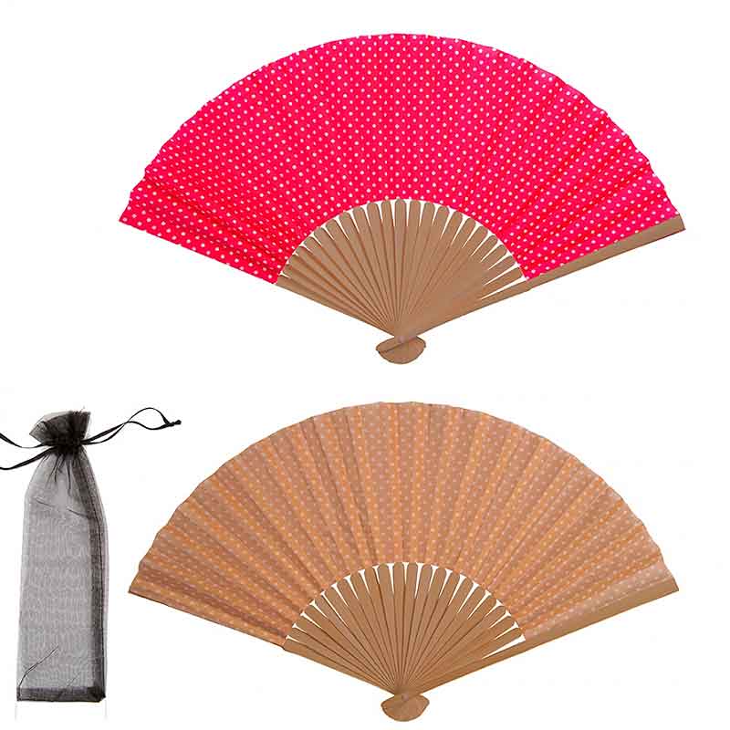 Abanico fabricado en bambú y poliéster.