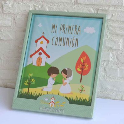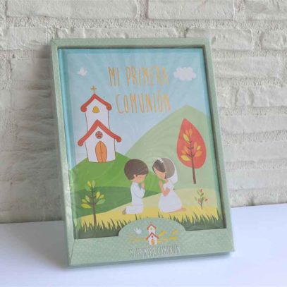 Alegre y moderno Álbum de Comunión unisex, con el que harás uno de los regalos más bonitos y entrañables de la Primera Comunión, para el que niño o la niña puedan guardar todos sus recuerdos de ese maravilloso día.