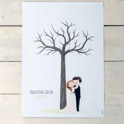 Nuestro Árbol de huellas Boda personalizado, es una idea original y divertida para las celebraciones y fiestas de las bodas, donde los invitados pueden dejar su huella dactilar y sus nombres decorando cada una de las ramas de este bonito árbol.