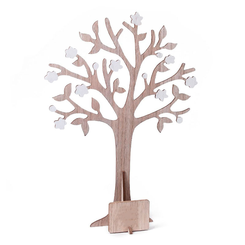 El Árbol de los buenos deseos es un fantástico regalo para cualquier celebración. confeccionado en Madera clara y adornado con flores blancas también de madera.