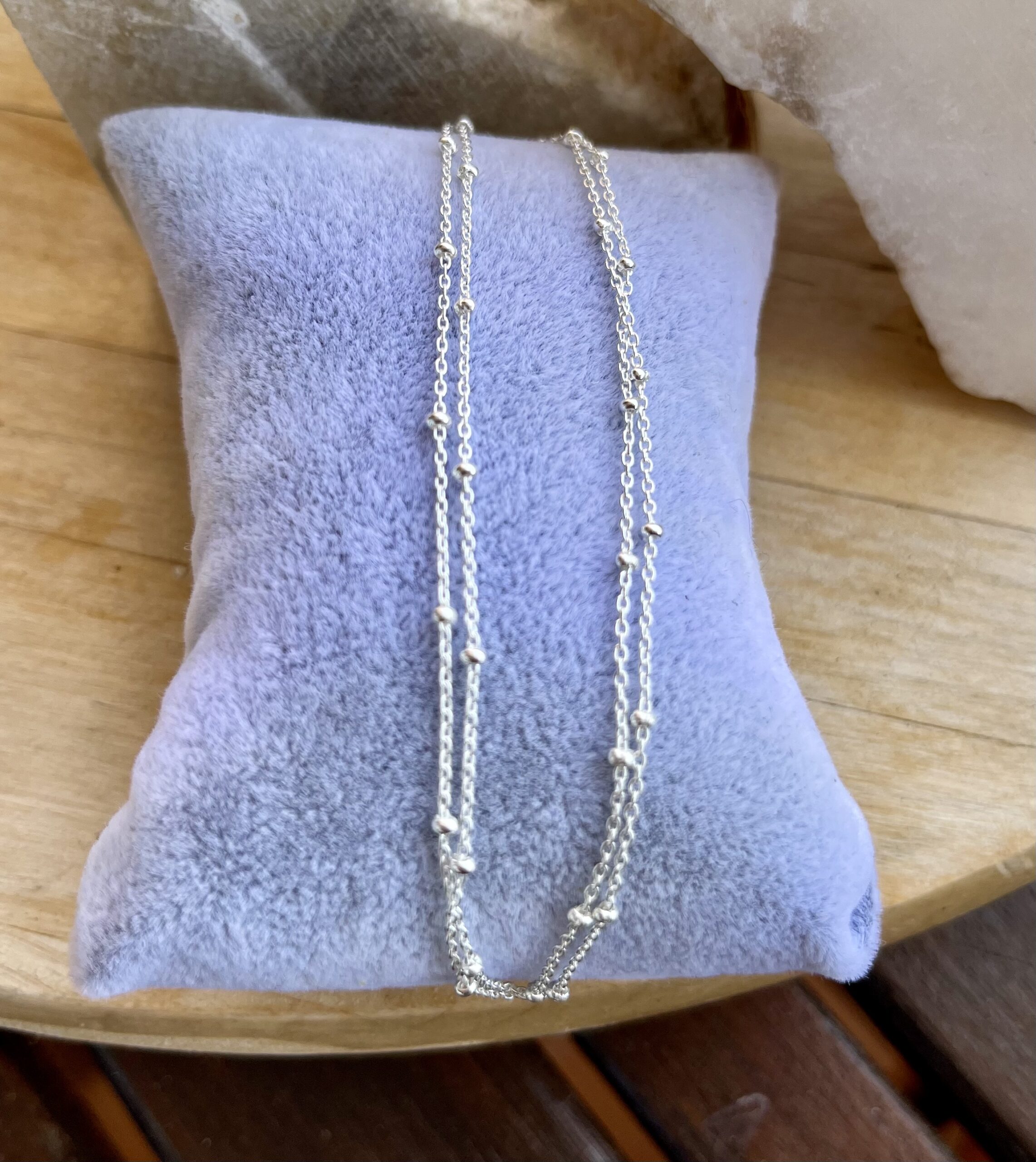Preciosa Cadena de plata diamantada 50 cms, formada por bolitas facetadas en todas sus caras que hacen que brille mucho y realce así el colgante que quieras lucir.