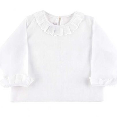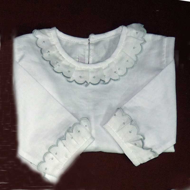 Camisita de bebé, de recien nacido primera puesta, 100% algodón y volante de piqué.