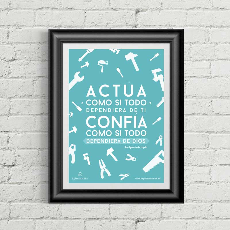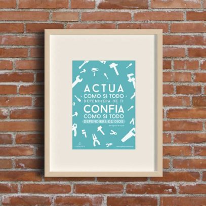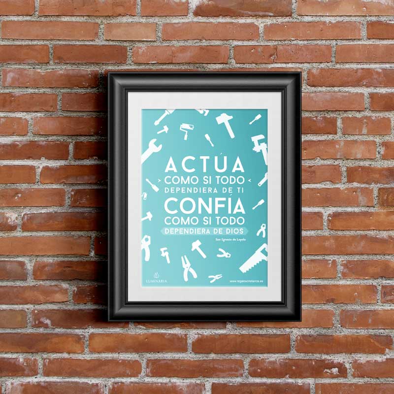Texto: «Actúa, como si todo dependiera de ti. Confía como si todo dependiera de Dios» (San Ignacio de Loyola)