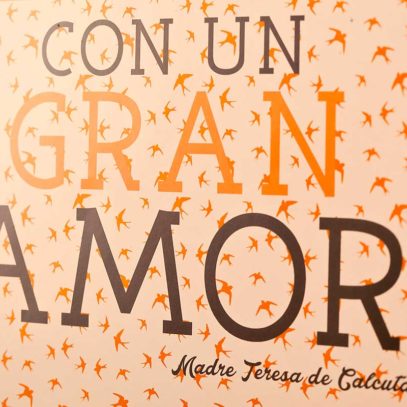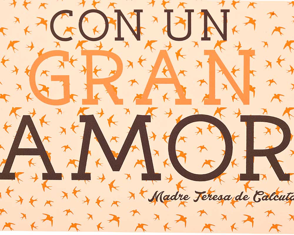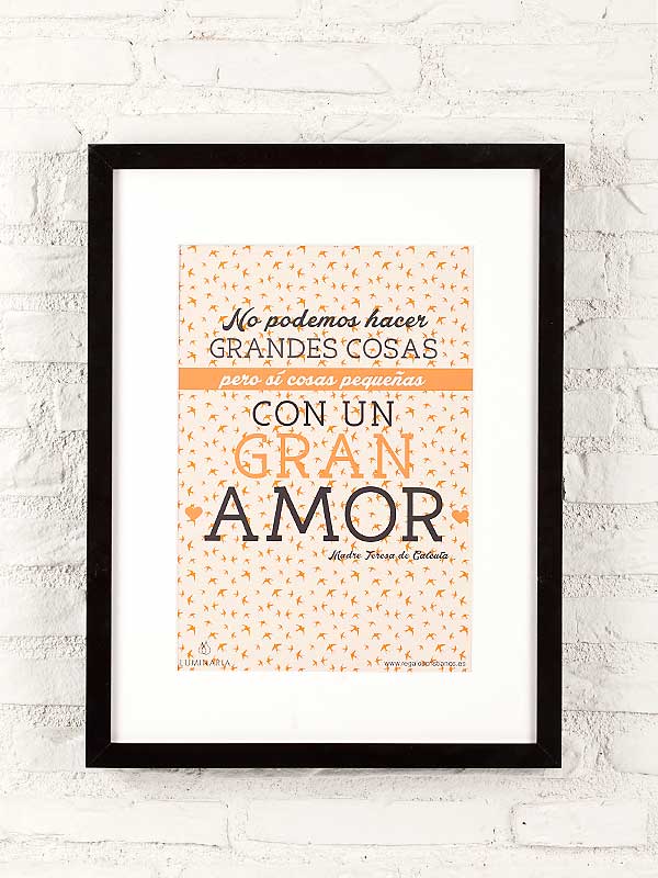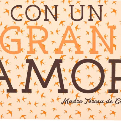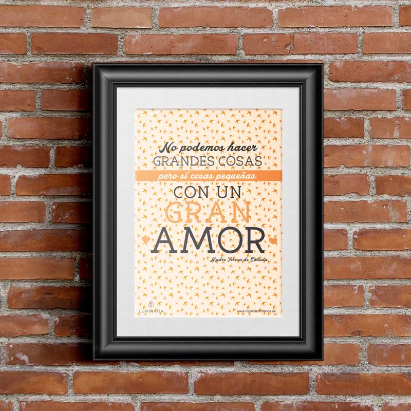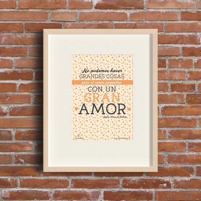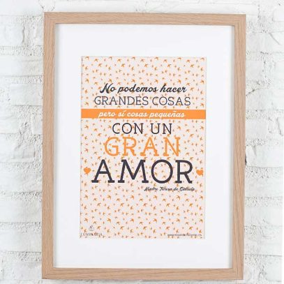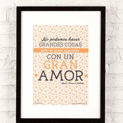 Texto: «No podemos hacer grandes cosas, pero si cosas pequeñas, con un gran amor» (Madre Teresa)
