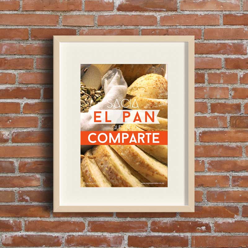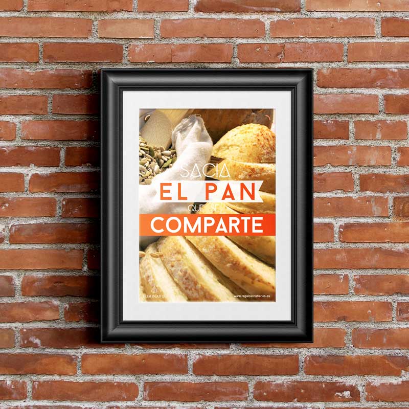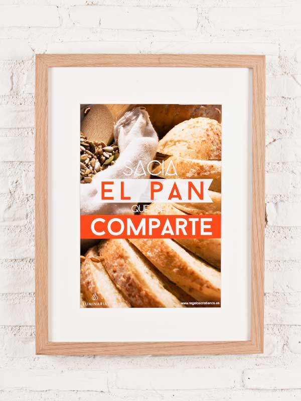 Aunque… ¿que me dices de este Cartel sobre el Pan? Nos parece una bonita, cálida y entrañable imagen acompañada de unas palabras que nos invitan a compartir. Mejor mensaje cristiano para un comedor o para alegrar una cocina no puede haber. Todos nos sentamos a la mesa y nuestro cartel habla, recordándonos qué es lo que de verdad importa.