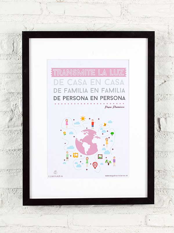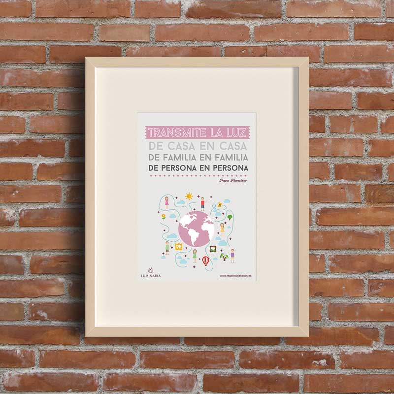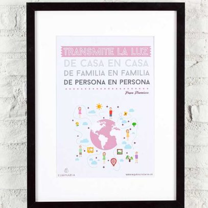 Texto: «Transmite la luz, de casa en casa, de familia en familia, de persona a persona» (Papa Francisco)