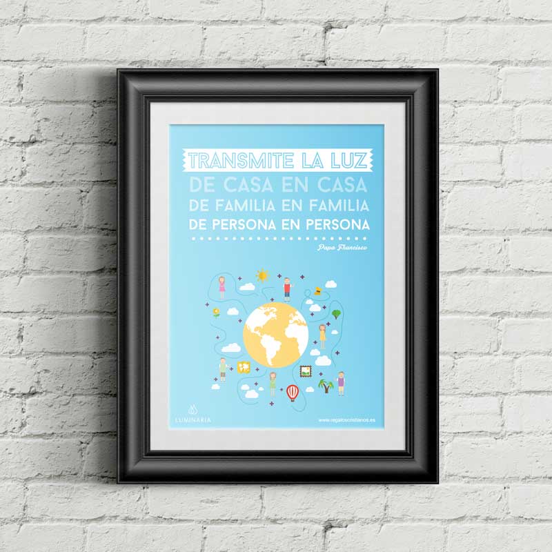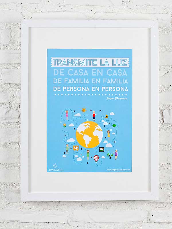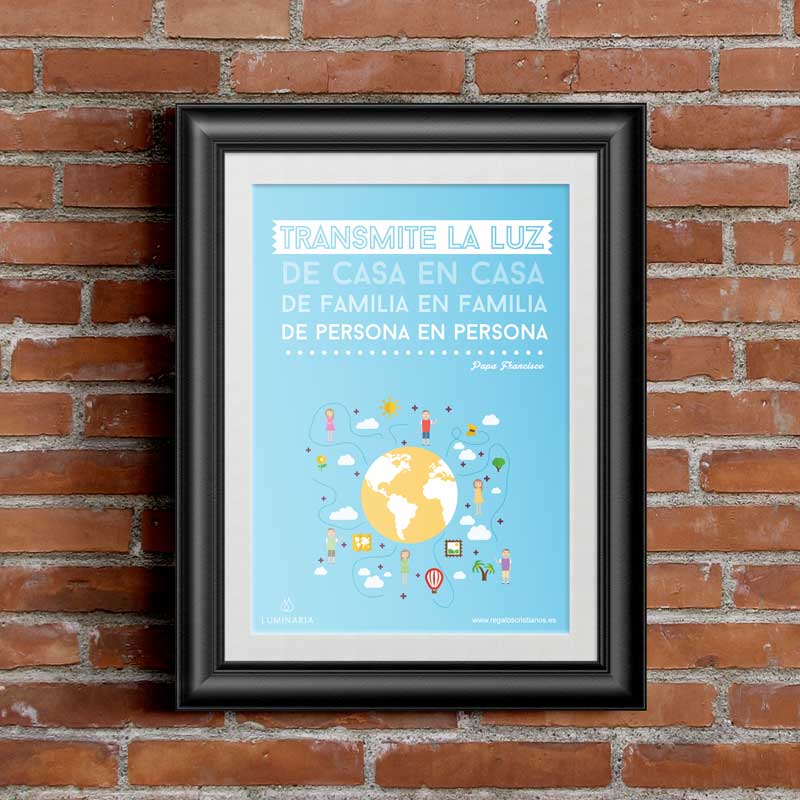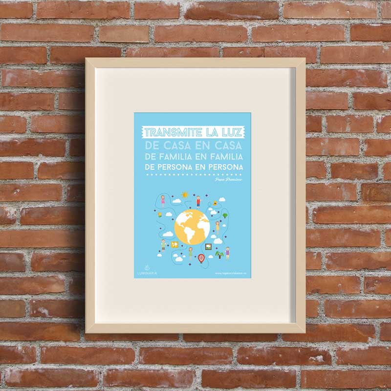 Texto: «Transmite la luz, de casa en casa, de familia en familia, de persona a persona» (Papa Francisco)
