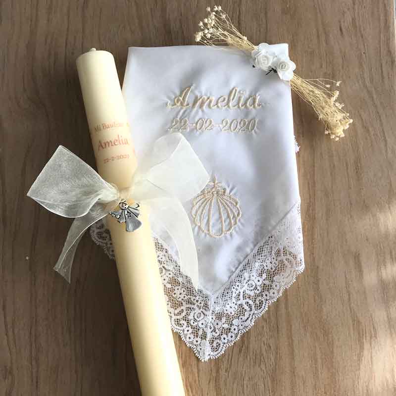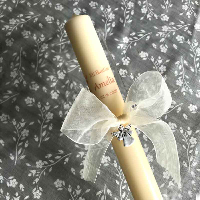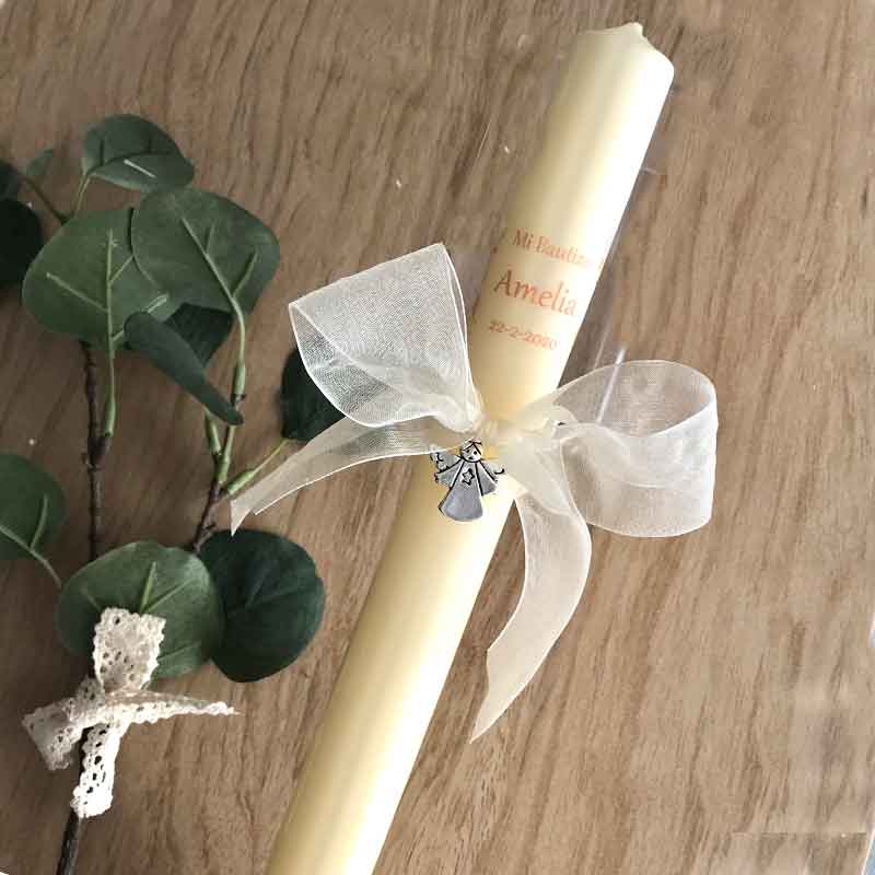 - Cirio de Bautizo personalizado con lazo de encaje.
