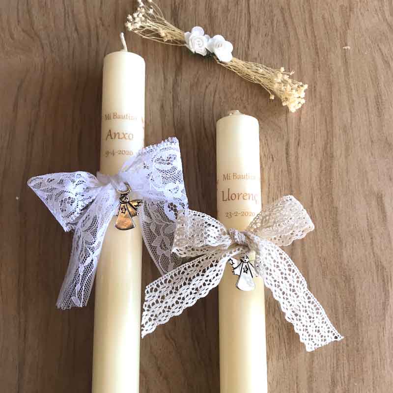 Cirio de Bautizo lazo encaje