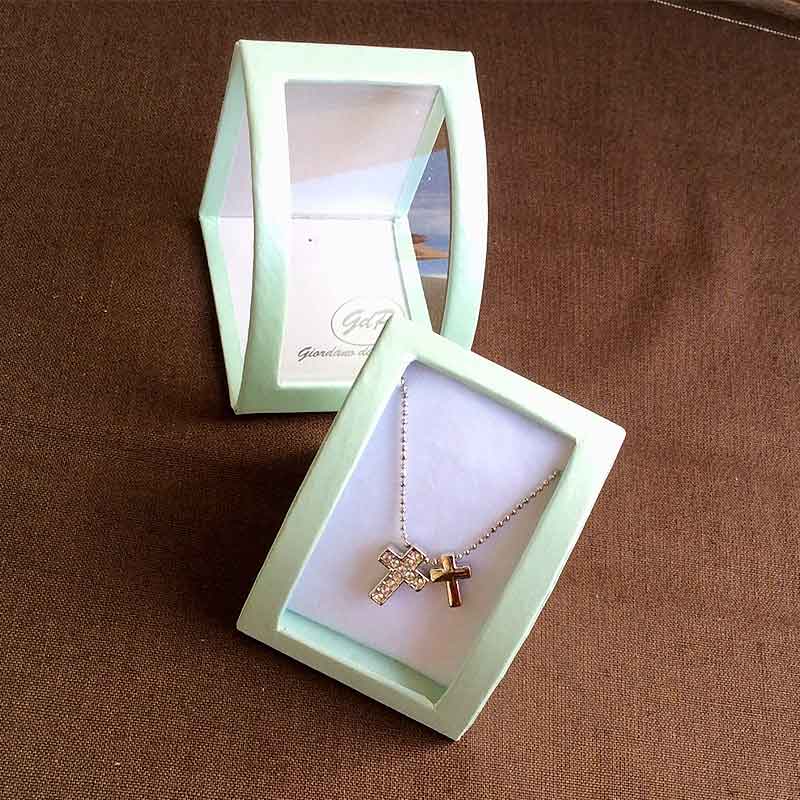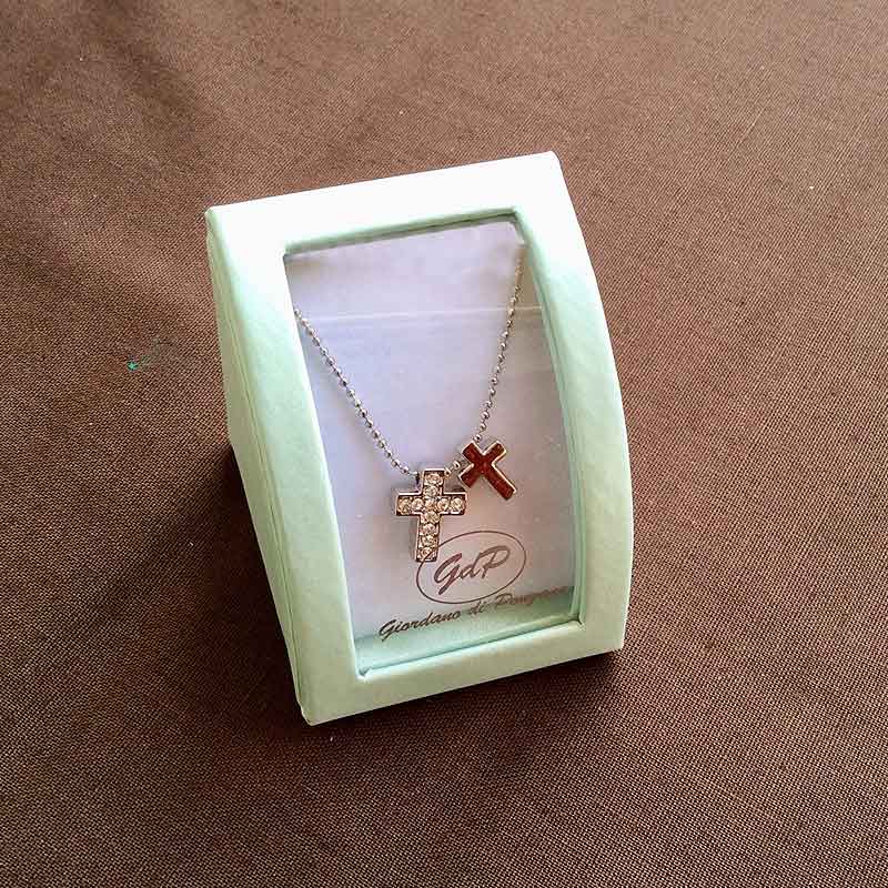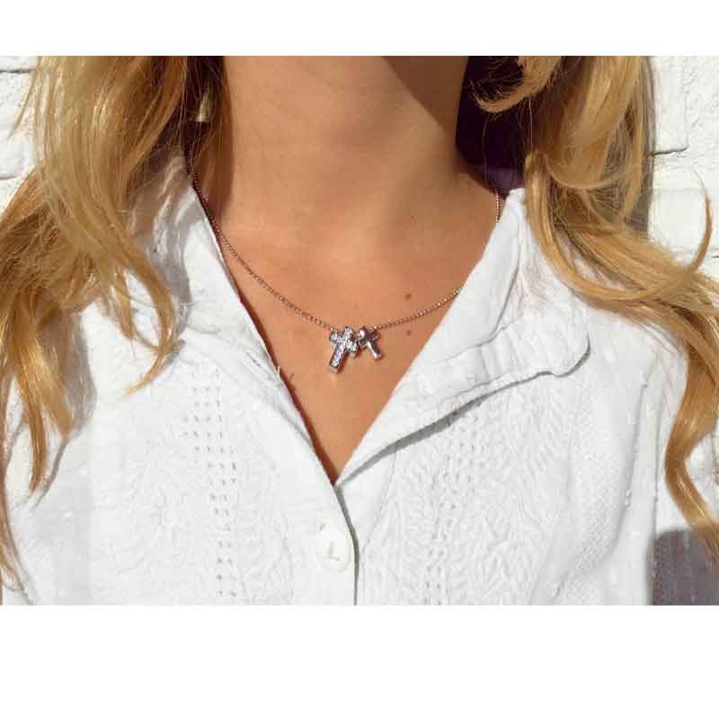 Colgante Cruz doble, compuesto por dos cruces diferentes colgadas en la misma cadena.