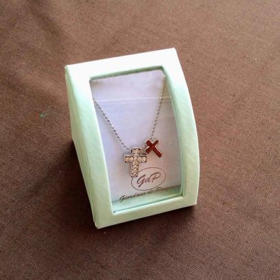 Una Cruz lisa pequeña de 1 cm de altura y otra Cruz de piedrasde 1,5 cms.