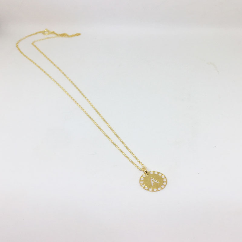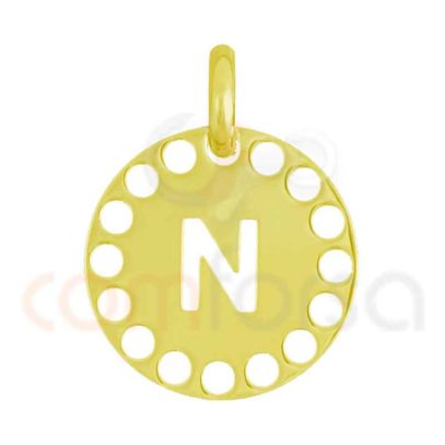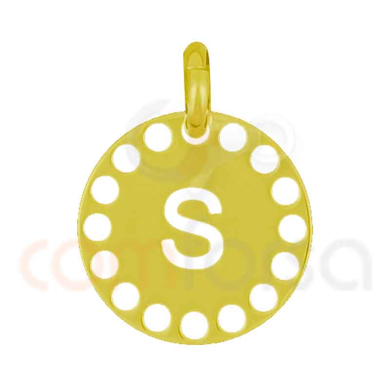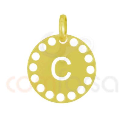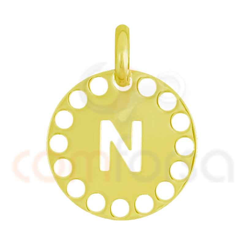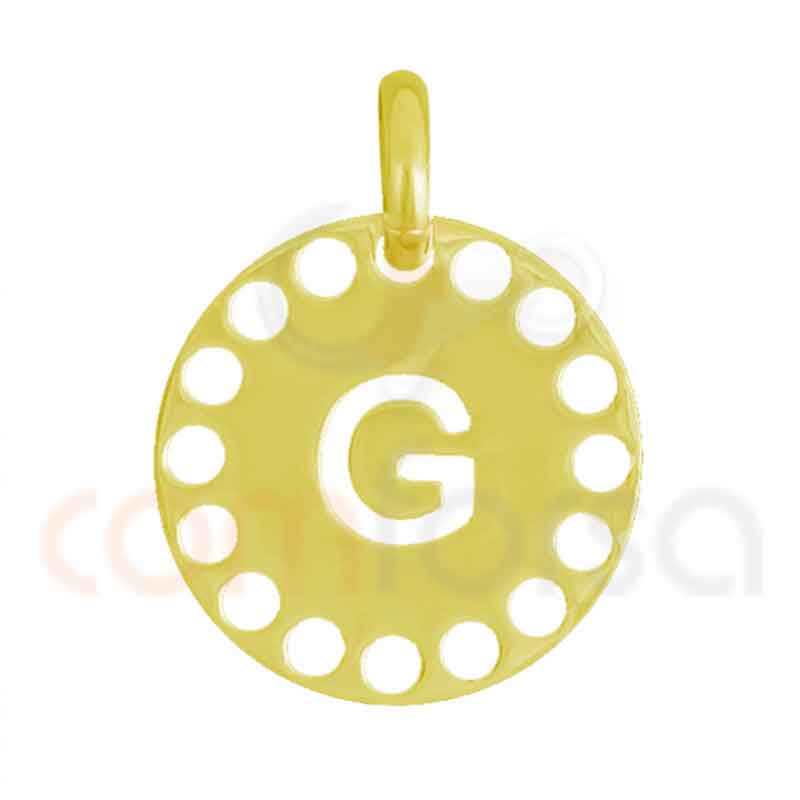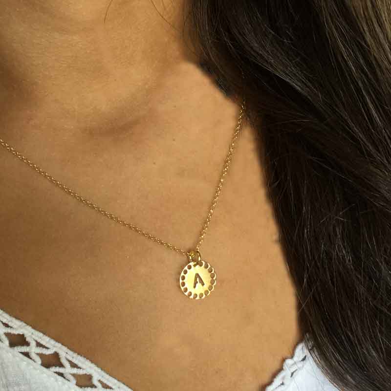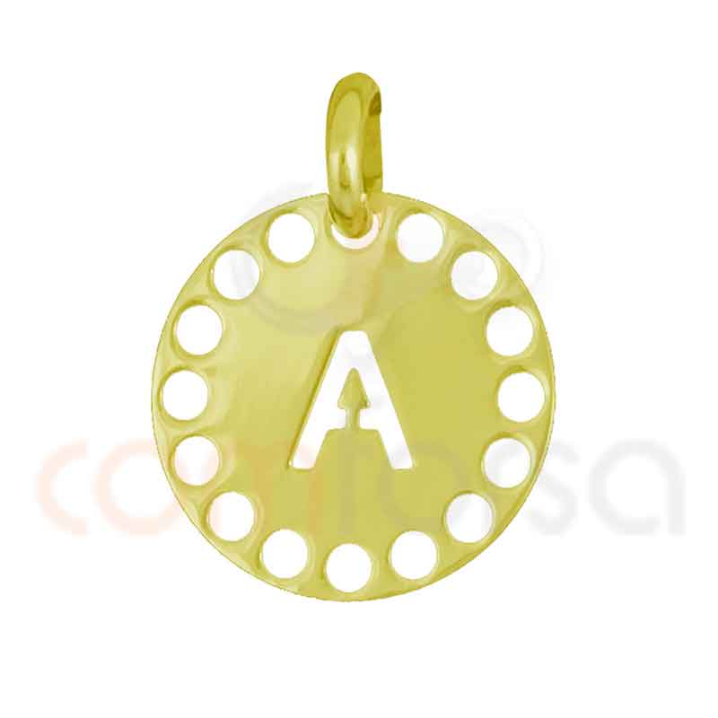 Un Colgante precioso con forma de medalla redonda con la inicial y los circulos que la rodean troqueladas.