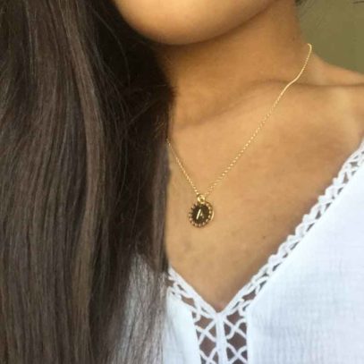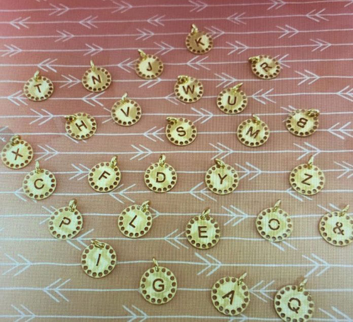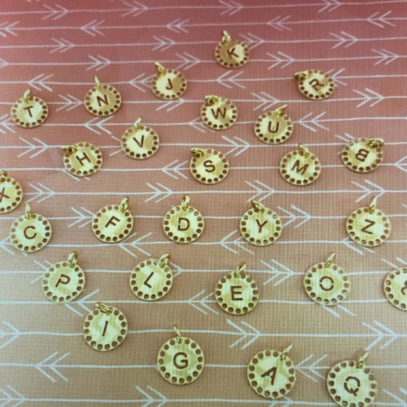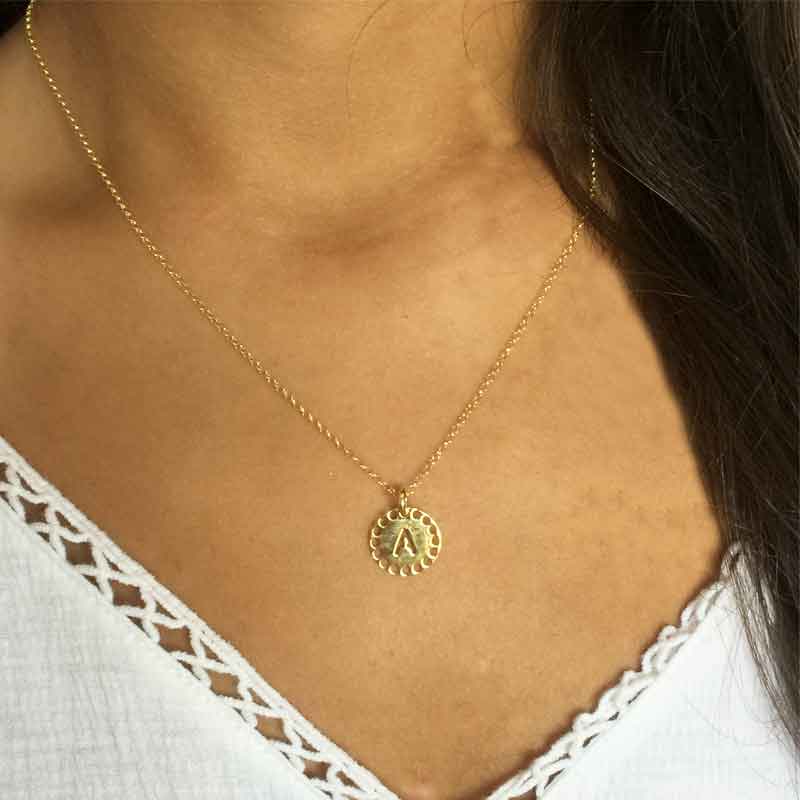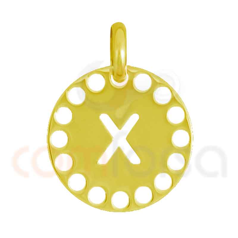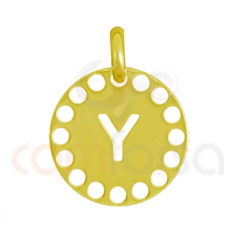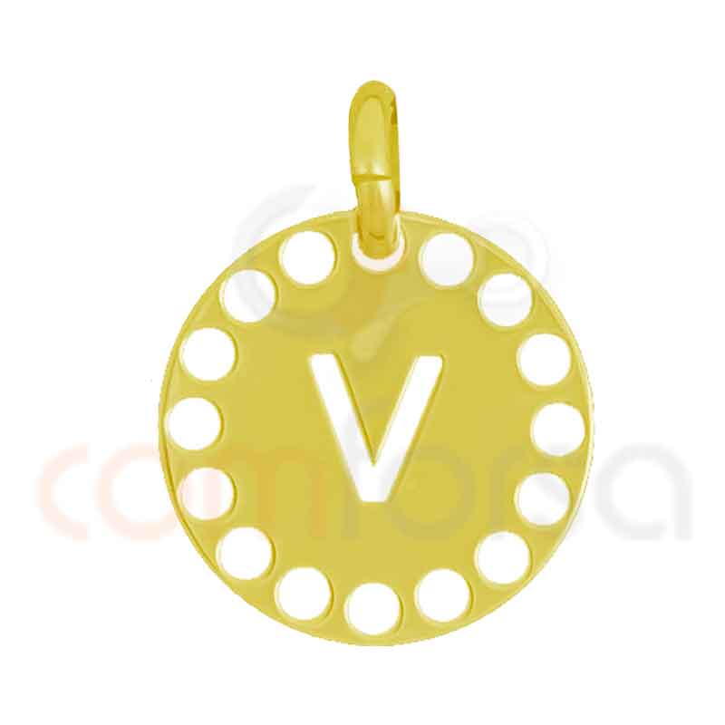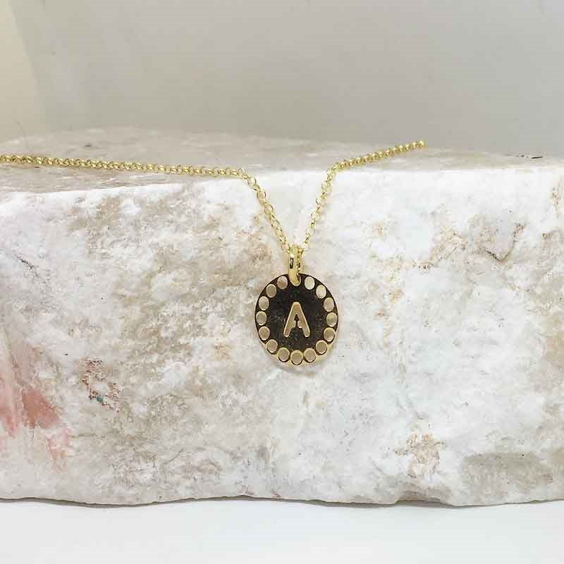 Un Colgante precioso con forma de medalla redonda con la inicial y los circulos que la rodean troqueladas.
