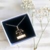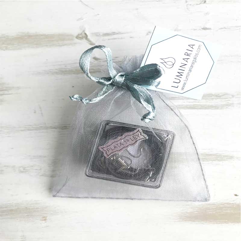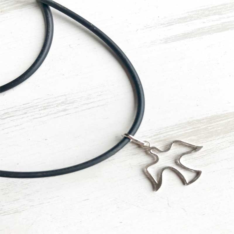 Puedes elegir regalarlo junto con su cadena de plata de ley a juego de 45 cms de rolo, y te lo enviamos en su estuche blanco de joyería y envuelto de regalo o bien más sencillo montado con un moderno cordón de caucho negro de 40 cms con cierres plateados y extensión de 5 cms más por si prefieren que cuelgue más, irá en una cajita transparente dentro de una bolsita de organza gris.