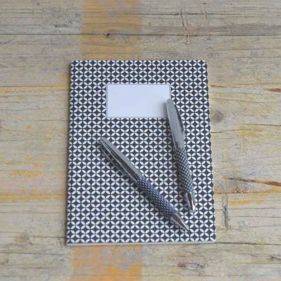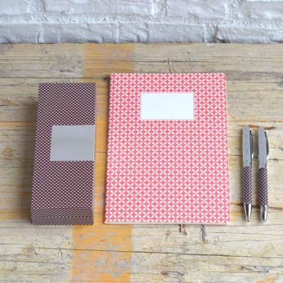 - Libreta A5 estampada en colores, Rojo, Azul y Negro, con tapas de cartón, y contiene 32 hojas color crema rayadas en su interior. Preciosa para regalar, de estilo Vintage.