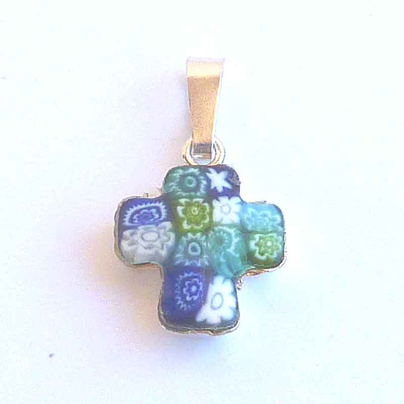 Cruz de Murano y Plata pequeña multicolor .