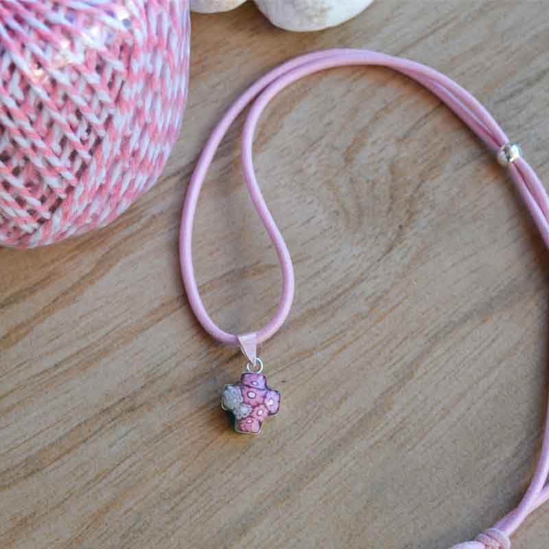 Puedes completar tu regalo con un cordón de color rosa elástico ajustable con bolita o uno de seda color, o dale más prestancia con una delicada cadena de plata.