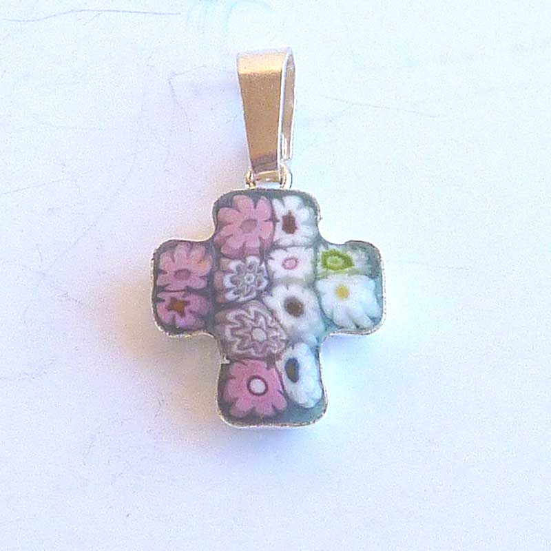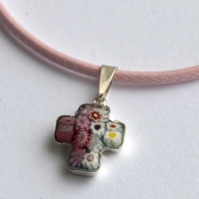 Pequeña Cruz de Cristal de Murano y Plata, mira que colores tan alegres y bonitos.