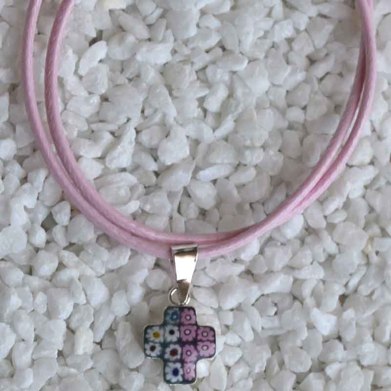 Mira que bonita Cruz de Murano y Plata, puedes regalar, con alegres colores, gustarán a todas la Niñas, y adultos.
