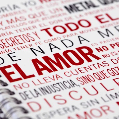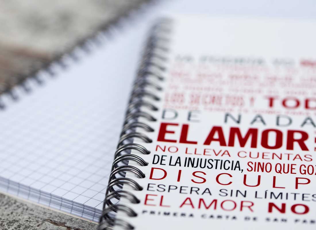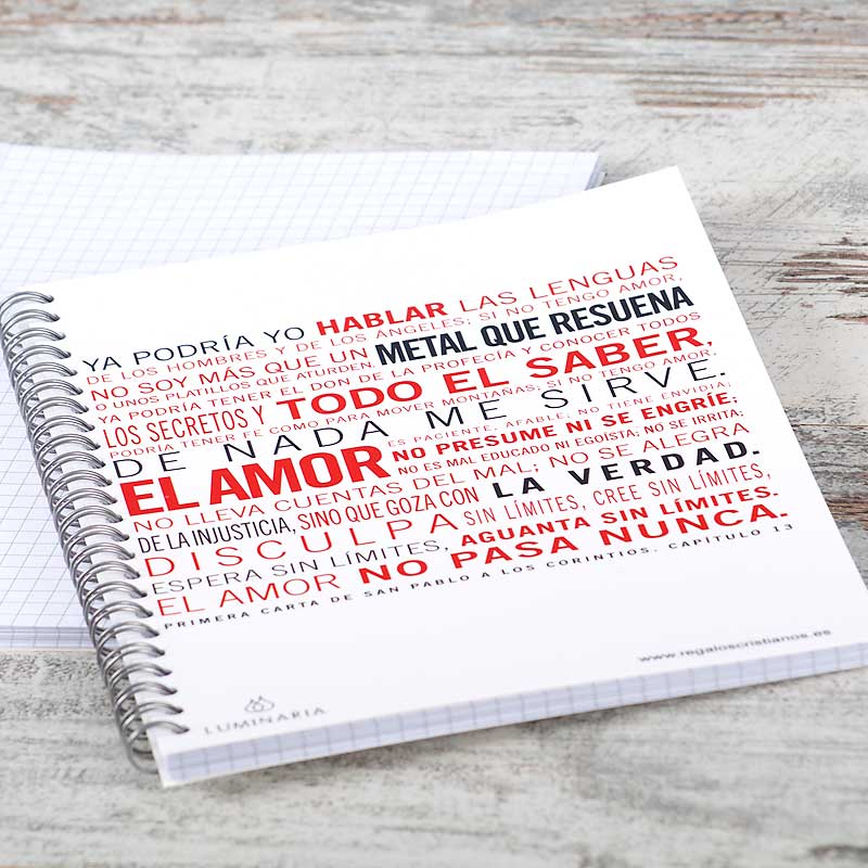Se puede decir más alto… pero más claro, no. San Pablo escribió a los corintios de antaño y a nosotros –corintios de ahora- en qué consiste el amor. Amor en serio, amor del bueno. Del que se siembra y se recoge, del que obra milagros y hace feliz. Se nos ha ocurrido también poner sus palabras en uno de nuestros cuadernos como recuerdo permanente de en qué consiste “el secreto”.