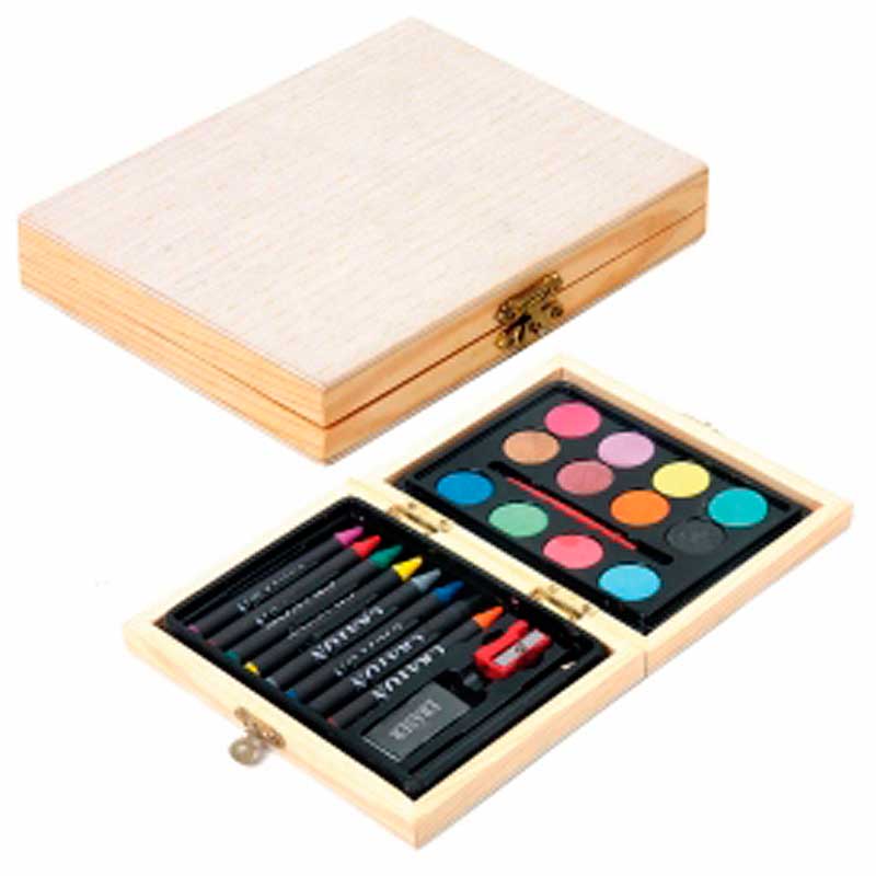 Estuche de madera muy completo, con todo lo necesario para pintar, const de: