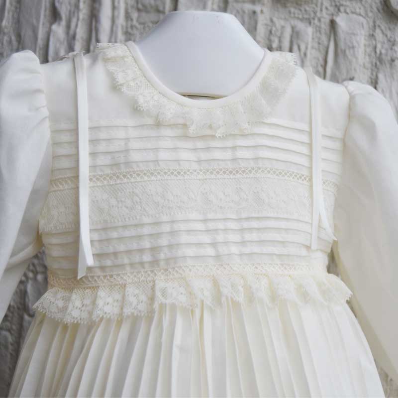 Muchas gracias, tu faldón de batista, en beige con manguitas, es precioso y la capota a juego ideal, buena elección, una joya familiar para toda la vida.