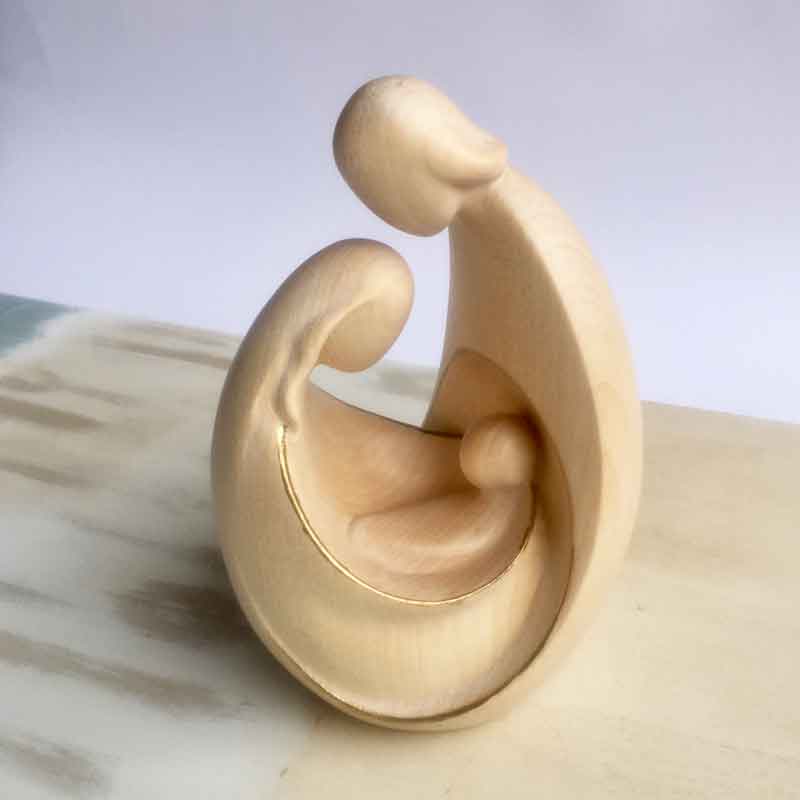 Grupo Natividad Art Deco Cera Oro, figura compacta de bloque de madera de Arce, con acabado en tono natural y cera oro. Con un perfecto pulido que lo hace cálido y agradable al tacto.