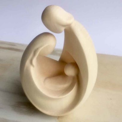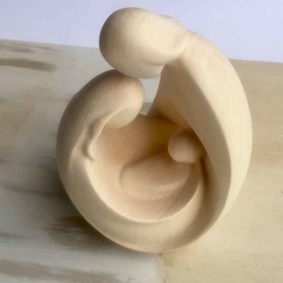 Grupo Natividad Art Deco Natural, creado desde un precioso bloque de madera de fresno compacto , en acabado encerado natural.