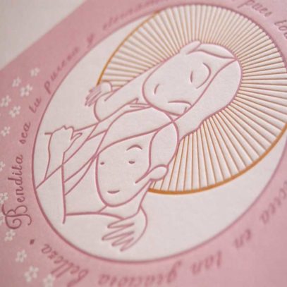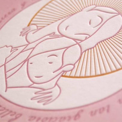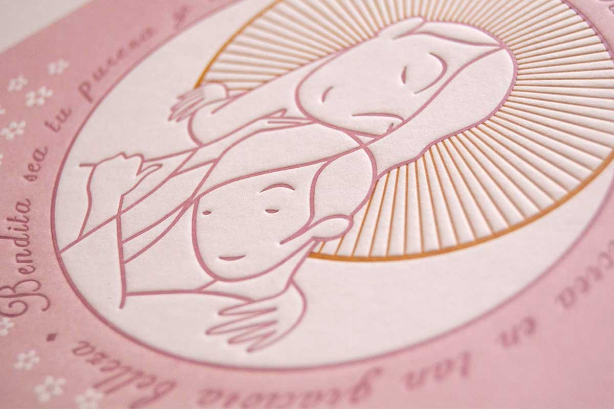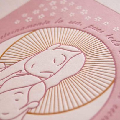 Lámina «En tu regazo», impresa en letterpress, con técnica de golpe seco, en papel de altísima calidad y grosor y produciendo efecto relieve.