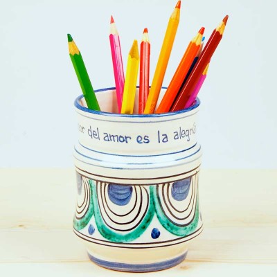 Este juego de cáliz y patena no son lujosos, pero transmiten toda la calidez humana del barro y de la pintura artesana. Un material humilde iluminado, pieza a pieza, por la mano y la dedicación silenciosa de nuestra pintora.