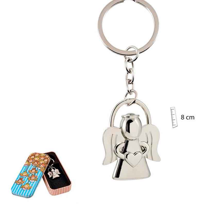 Llavero Ángel Corazón, un llavero precioso de metal bañado, que enviamos en una lata preciosa decorada,.
