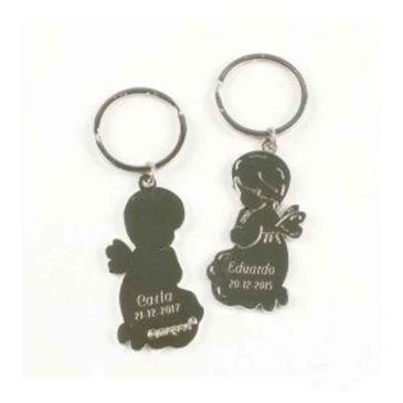 Los llaveros pueden ir grabados en la parte trasera con el Nombre de la Niña que comulga y la fecha de la primera Comunión.