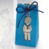 Disponemos de dos modelos,y ambos a elegir la presentación final, en cajita estuche de regalo azul o anudado a una cajita de peladillas.