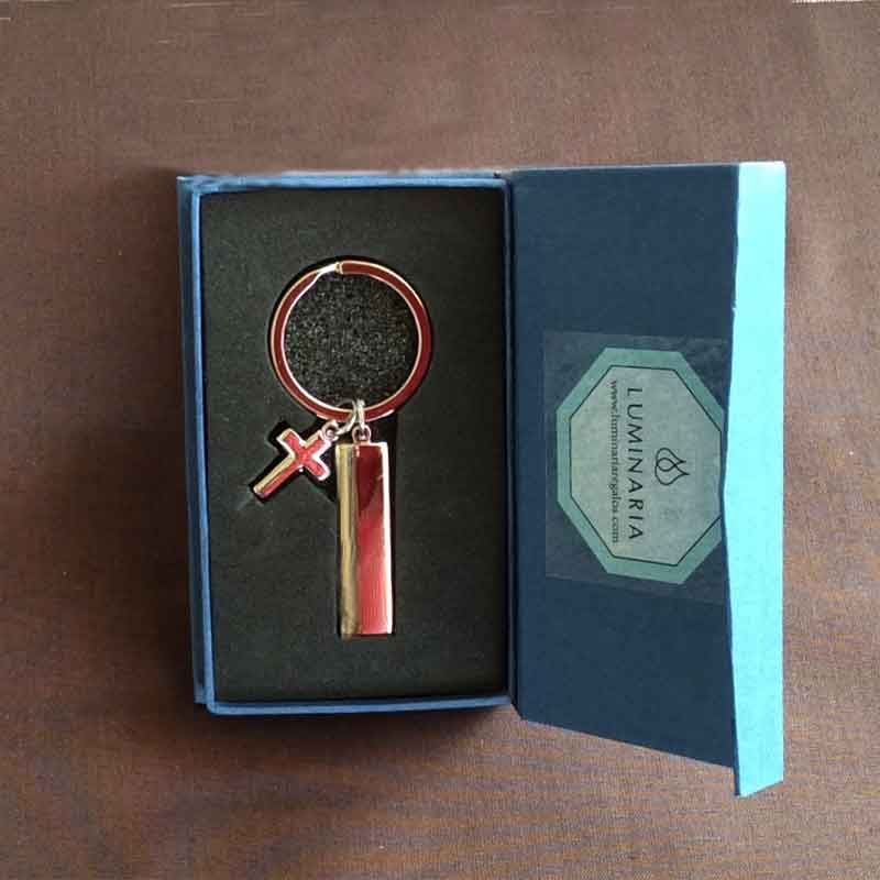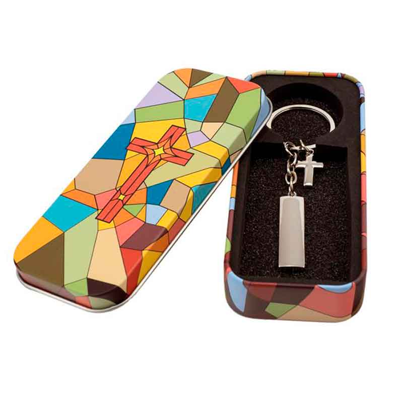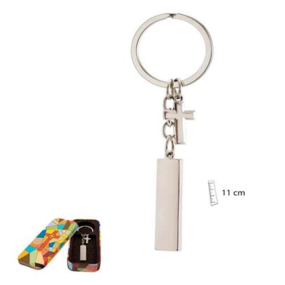 Bonito y elegante Llavero con Cruz y Chapa para poder personalizar tu regalo.