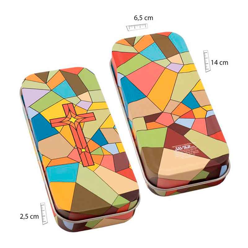 - Estuche: 8 cms, cierre imán.o cajita lata decorada.