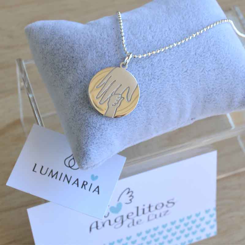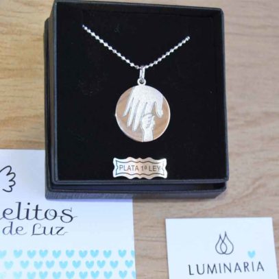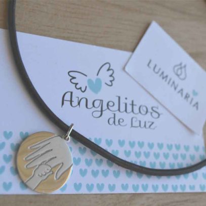 confeccionada en plata de ley 925 , acabado en brillo y mate, con pulido espejo. Perteneciente a la colección de Luminaria «Angelitos de Luz».