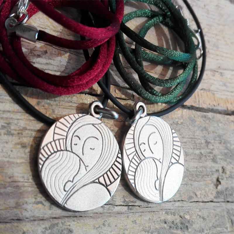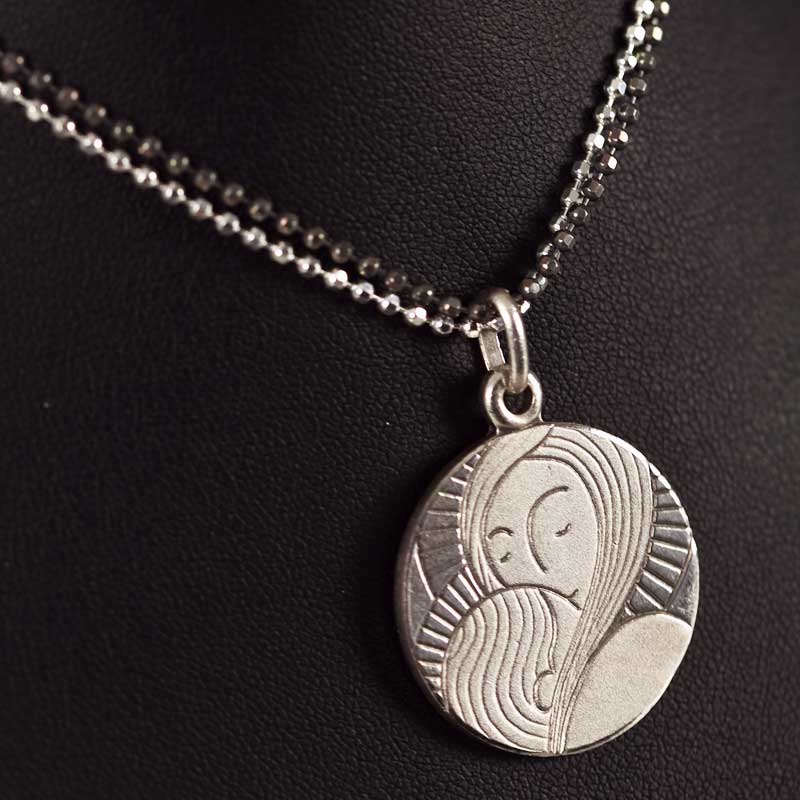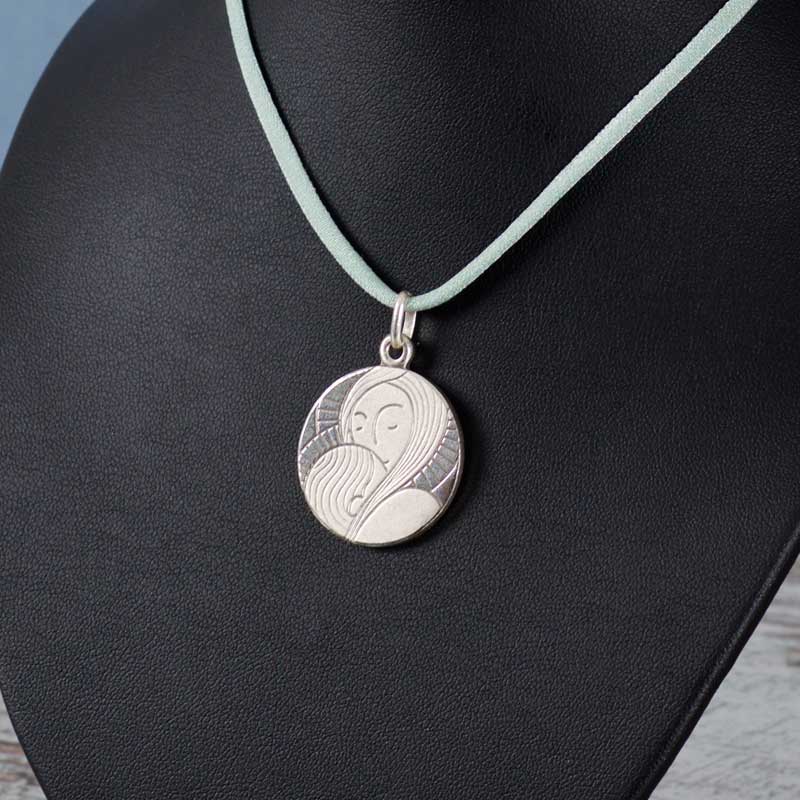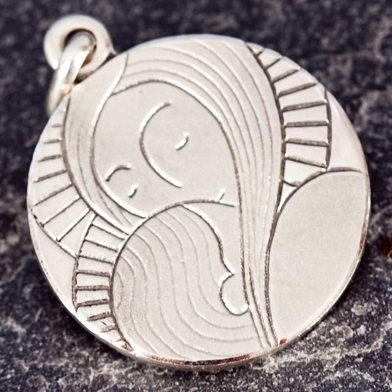 Medalla de Plata de ley 925, de la Virgen María con el niño.