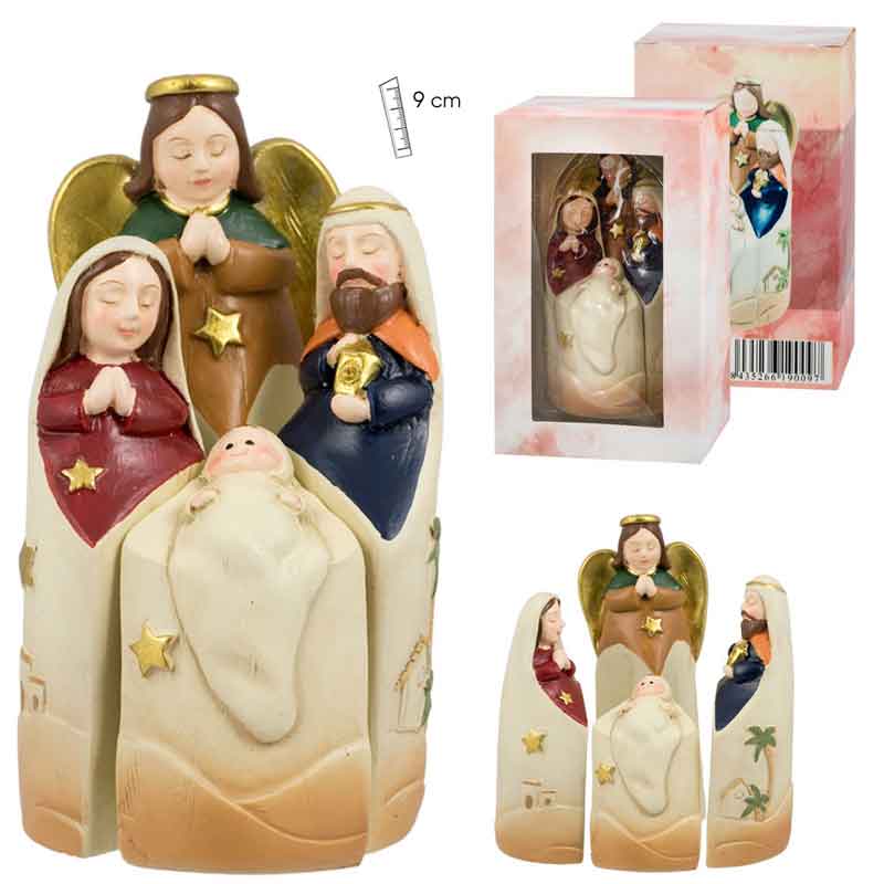 Misterio encajar 4 piezas Ángel, bonito conjunto de 4 piezas, con el Ángel rodeando a la Sagrada Familia, pintado a mano y con un tierno gesto simpático.
