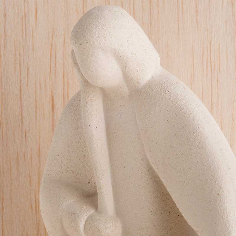 Precioso Nacimiento de dos figuras confeccionado en arcilla refractaria, de lineas modernas, sencillas pero muy expresivas. Ideal para regalar esta Navidad, y que encaja tanto en una habitación personal, como en tu lugar de trabajo.