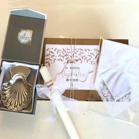 Se compone de dos productos necesarios para la ceremonia del Bautizo: